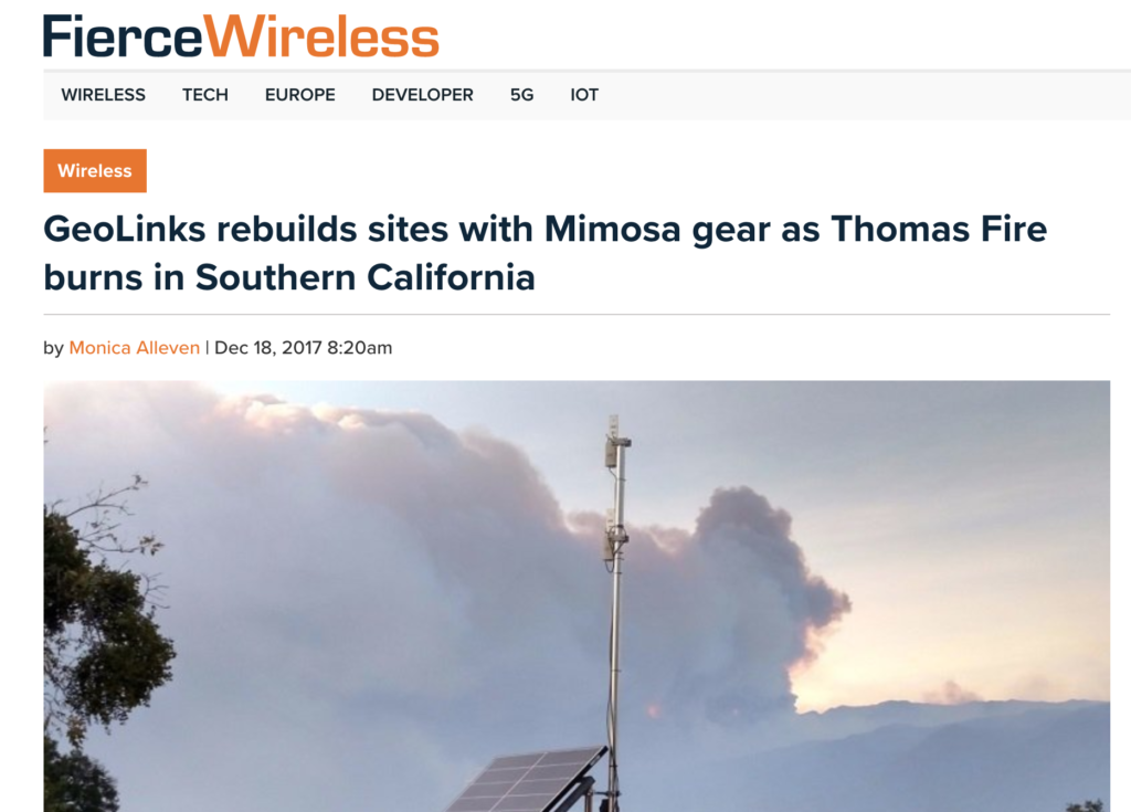 Original Article GeoLinks employees are literally putting out fires as they strive to replace damaged telecom sites throughout the area where fires are destroying homes and threatening lives in Southern California. The company, based in Camarillo, which is in Ventura County, has been working around the clock since […]
