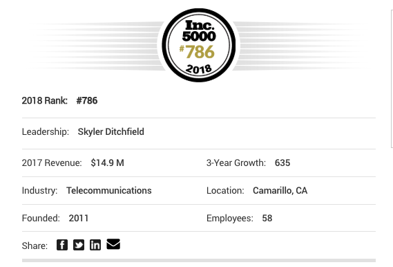 GeoLinks Earns its place on Inc. Magazine’s 37th Annual List of America’s Fastest-Growing Private Companies—the Inc. 5000 For the 2nd Time, GeoLinks Appears on the Inc. 5000, Ranking No. 786 overall and No. 1 Telecom in California With Three-Year Revenue Growth of 635 Percent August 16, 2018 10:00 […]