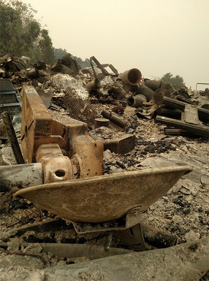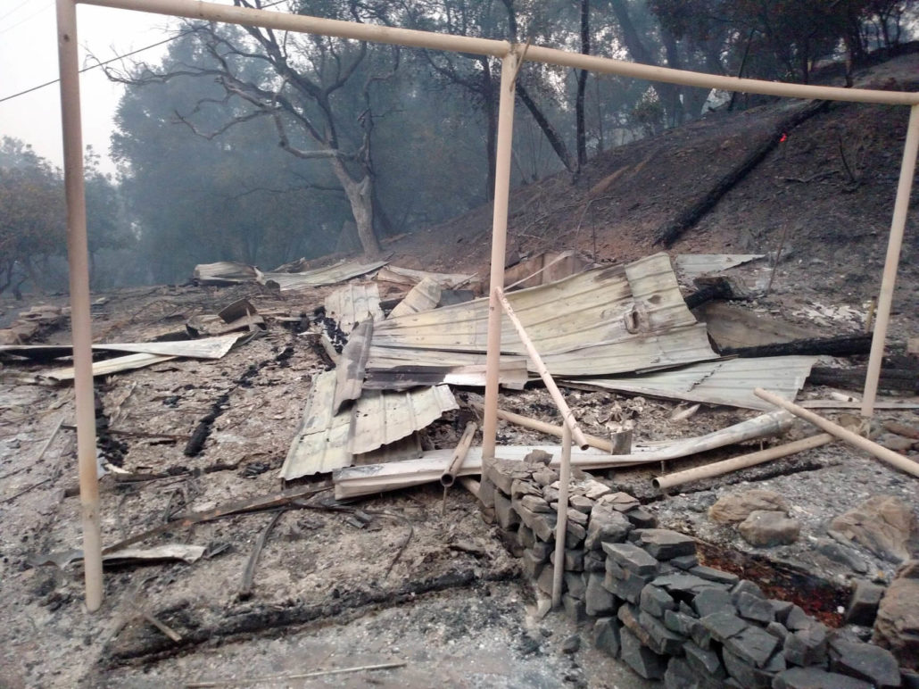 “Driving through Ventura was pretty surreal, lots of smoke and multiple fires visible from the street. Driving up to the actual tower was disheartening at first, just because of how much was burned; one of the posts holding up the gate was completely destroyed leaving the gate lying on the ground. It was there where we first noticed a fence post smoking…but we continued on.